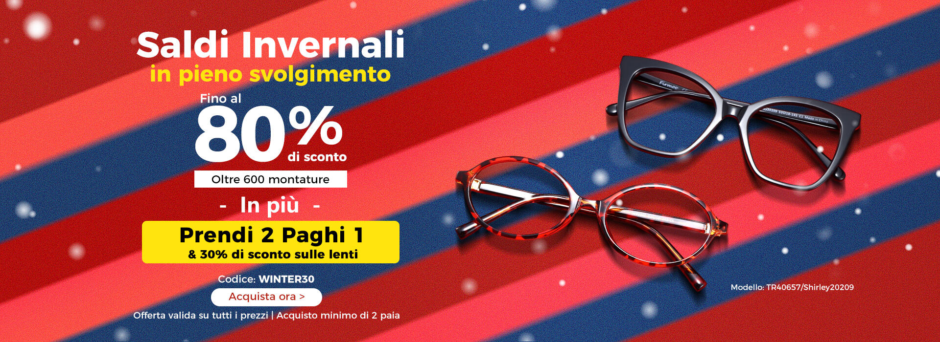 In più: 2x1 montature & lenti –30% | Con codice: WINTER30