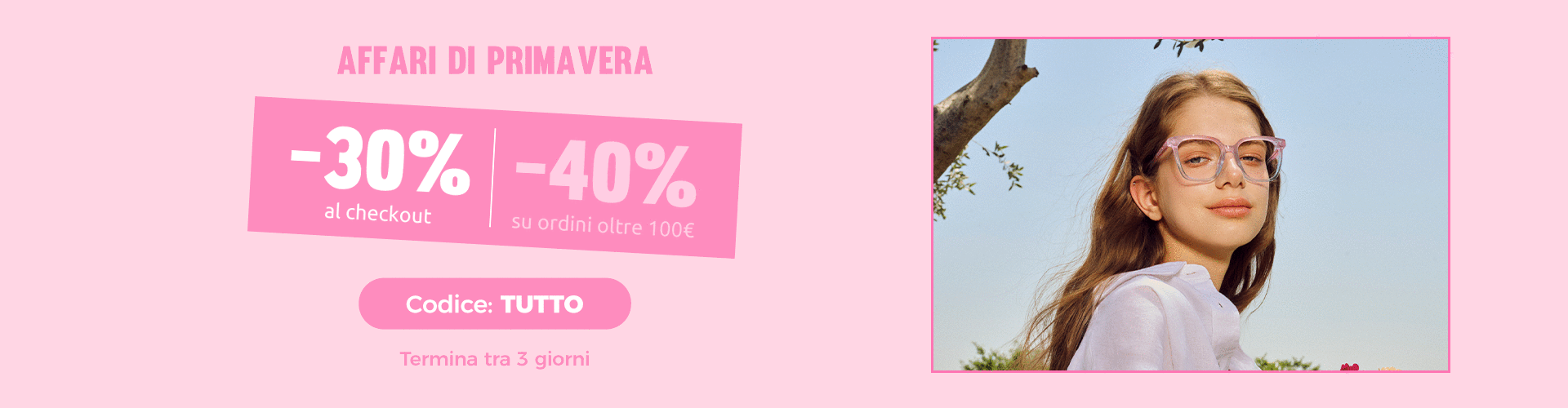 Pasqua in stile - 2x1 montature & -30% sulle lenti | Codice: 30BOGO
