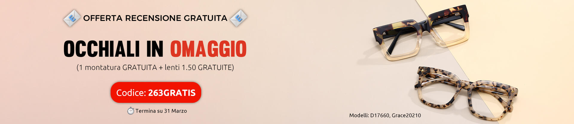 Pasqua in stile - 2x1 montature & -30% sulle lenti | Codice: 30BOGO