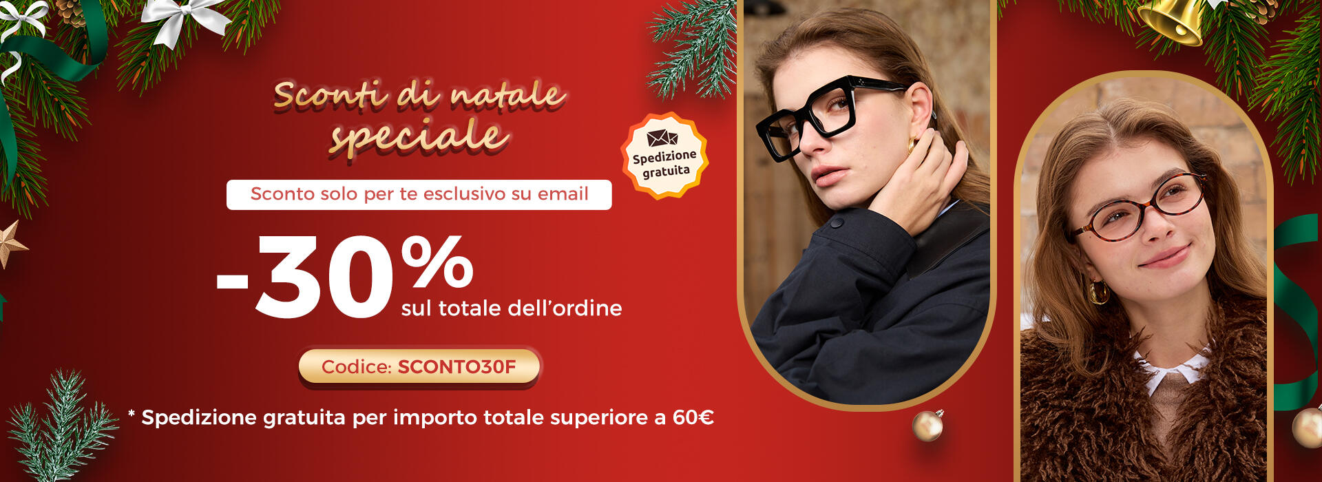 Sconto di NATALE 🎅🏻Prendi 2 Paghi 1 & 30% di sconto sulle lenti | Codice: 30BOGO