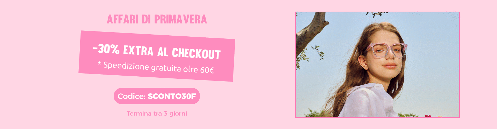 Pasqua in stile - 2x1 montature & -30% sulle lenti | Codice: 30BOGO