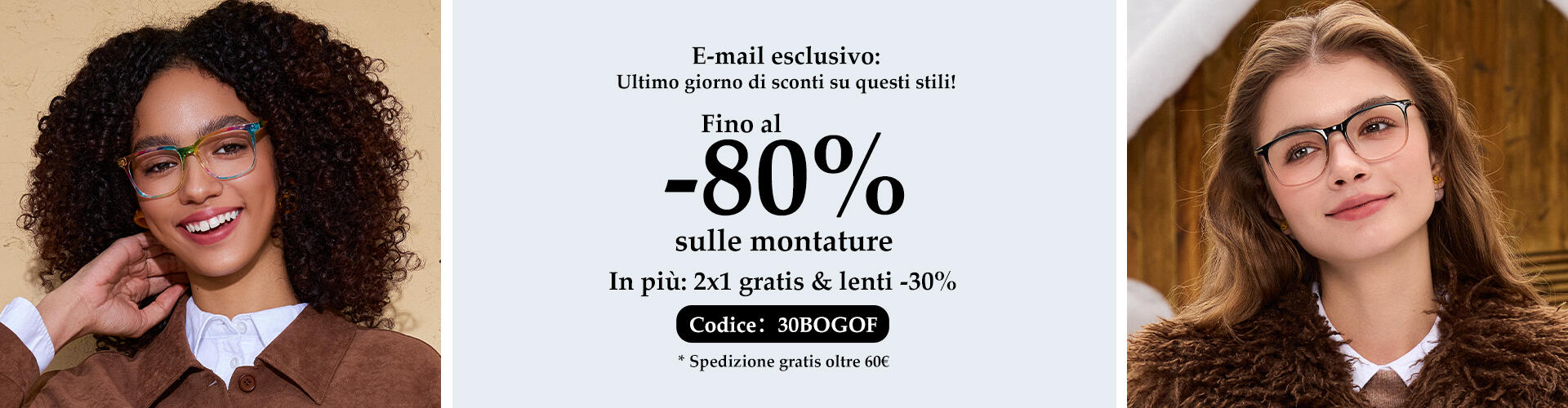 Pasqua in stile - 2x1 montature & -30% sulle lenti | Codice: 30BOGO