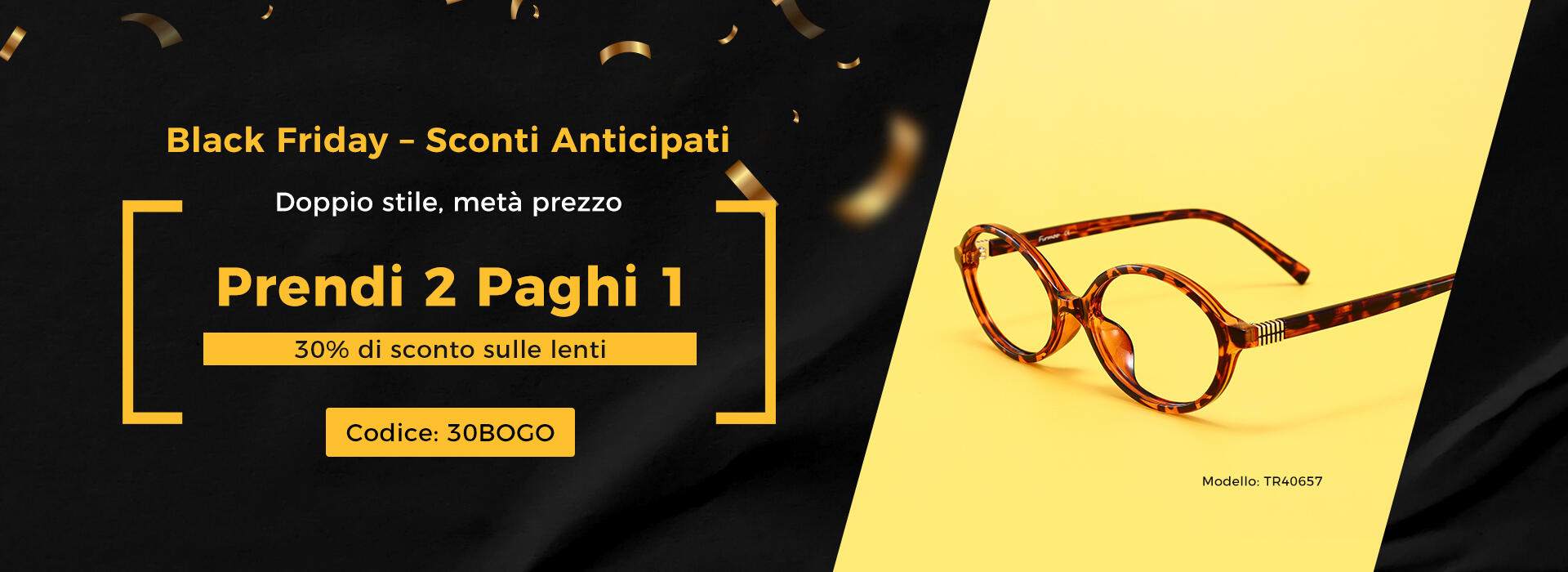 💰Black Friday🏷️Oltre 1000 montature fino al -80% & 30% di sconto sulle lenti | Codice: BLACK